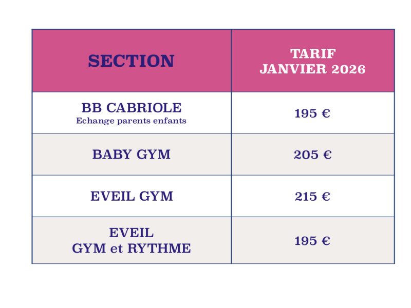 TARIF DE JANVIER À JUIN 2026